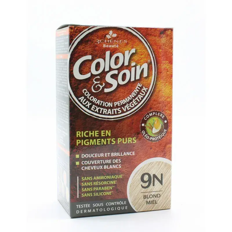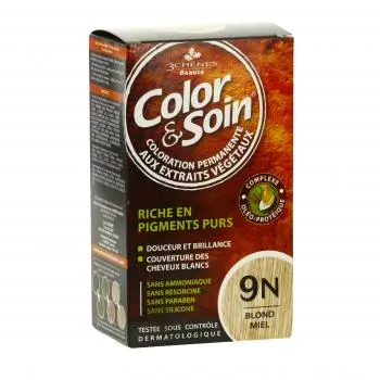 Découvrez 3CHENES COLOR SOIN Blond Miel 9N, la coloration capillaire qui sublime votre chevelure tout en la respectant. Sa formule innovante sans ammoniaque offre une couleur lumineuse, intense et naturelle, idéale pour un blond miel élégant. Enrichie en extraits végétaux, elle préserve la vitalité de vos cheveux et leur procure douceur et brillance. Les pigments haute tenue garantissent une couverture parfaite des cheveux blancs et une couleur longue durée. Facile à appliquer grâce à sa texture onctueuse, elle ne coule pas et assure un résultat homogène dès la première utilisation. Le soin inclus nourrit en profondeur et protège la fibre capillaire des agressions extérieures. Convient à tous les types de cheveux, même les plus sensibles. Pour un résultat optimal, appliquez sur cheveux secs non lavés et respectez le temps de pose indiqué. Offrez-vous une couleur éclatante, riche et lumineuse tout en prenant soin de vos cheveux avec 3CHENES COLOR SOIN Blond Miel 9N.