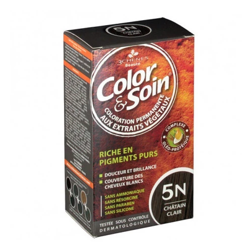 Découvrez 3CHENES COLOR SOIN CHATAIN CLAIR 5N, la coloration capillaire qui sublime vos cheveux tout en respectant leur nature. Sa formule innovante, sans ammoniaque ni résorcine, assure une couverture parfaite des cheveux blancs et offre une couleur riche, profonde et naturelle. Enrichie en extraits végétaux, elle nourrit la fibre capillaire et protège le cuir chevelu pendant la coloration. Facile à appliquer, elle garantit une couleur homogène, brillante et durable, pour un résultat professionnel à la maison. Grâce à sa texture onctueuse, le produit ne coule pas et enveloppe chaque mèche d’un soin protecteur. Idéale pour celles et ceux recherchant une couleur châtain clair lumineuse sans compromis sur la santé du cheveu. Utilisez le kit complet inclus pour un rituel de coloration simple et rapide. Pour un résultat optimal, appliquez sur cheveux secs non lavés et suivez le temps de pose indiqué. Renouvelez l’application toutes les 4 à 6 semaines pour conserver l’éclat de votre couleur. Offrez à vos cheveux une coloration soin qui allie performance, douceur et naturalité.