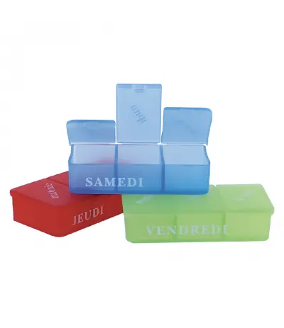 Pilulier semainier bleu, pratique pour organiser et sécuriser la prise de vos médicaments.