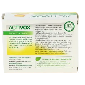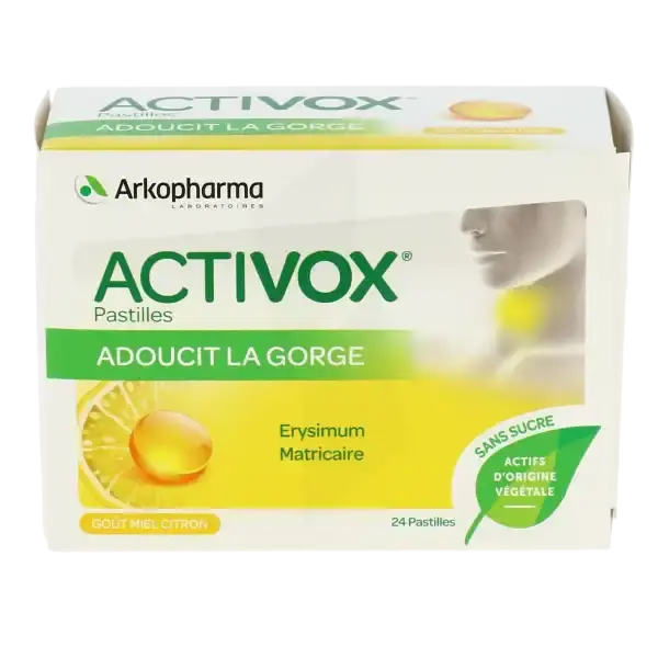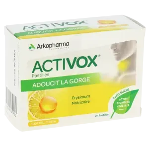 Découvrez ARKO PHARMA ACTIVOX Miel Citron, des pastilles spécialement formulées pour apaiser et adoucir la gorge. Grâce à leur association unique de miel et d’extraits de citron, elles offrent un gou00fbt agréable tout en procurant une sensation immédiate de confort. Elaborées par les laboratoires ARKO, ces pastilles sont idéales en cas de voix enrouée ou d’irritations passagères de la gorge. Leur format pratique de 24 unités permet de les emporter partout et de les utiliser à tout moment de la journée. Les actifs naturels sélectionnés contribuent à calmer les gênes liées aux agressions extérieures (froid, pollution, surmenage vocal). Utiliser ACTIVOX, c’est choisir une solution douce et efficace pour préserver votre bien-être au quotidien. Prendre 3 à 6 pastilles par jour, à laisser fondre lentement dans la bouche, pour une action optimale. Convient aux adultes et aux enfants de plus de 6 ans. Sans sucre ajouté, ces pastilles respectent votre santé tout en offrant une saveur gourmande. Adoptez ACTIVOX Miel Citron, l’allié incontournable pour traverser les saisons en toute sérénité.