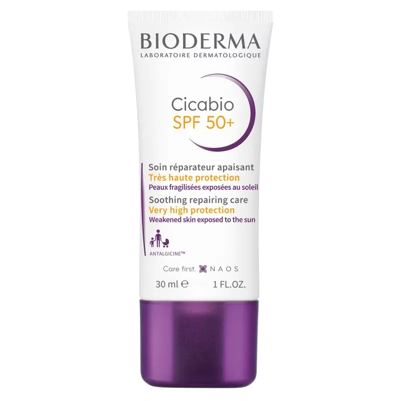 BIODERMA Cicabio Crème SPF50+ 30ml est le soin solaire incontournable pour protéger et réparer les peaux fragilisées ou irritées. Grâce à sa formule enrichie en agents réparateurs, elle favorise la reconstruction de l’épiderme tout en offrant une très haute protection contre les UVA et UVB. Sa texture hydratante et non grasse assure un confort immédiat, sans laisser de traces blanches. Idéale après un acte dermatologique, une intervention esthétique ou sur les cicatrices récentes, elle limite les risques de marques pigmentaires liées au soleil. Le complexe breveté Antalgicine™ apaise rapidement les sensations d’inconfort et de tiraillement. Testée sous contrôle dermatologique, elle convient à toute la famille, y compris aux peaux sensibles. Son format pratique de 30ml se glisse facilement dans un sac pour une protection optimale à tout moment. Appliquez généreusement sur les zones concernées avant toute exposition et renouvelez toutes les deux heures. Offrez à votre peau une réparation efficace tout en la préservant des méfaits du soleil avec BIODERMA Cicabio Crème SPF50+. Un allié essentiel pour une cicatrisation sereine et protégée.