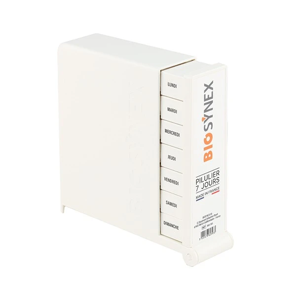 Le BIOSYNEX Pillulier Semainier est l’accessoire indispensable pour organiser et sécuriser la prise de vos médicaments tout au long de la semaine. Composé de sept compartiments distincts, il permet de préparer à l’avance vos prises quotidiennes, réduisant ainsi les risques d’oubli ou d’erreur. Sa conception ergonomique et compacte facilite son transport, que ce soit à la maison ou en déplacement. Les cases sont clairement identifiées pour chaque jour, offrant une visibilité optimale sur votre traitement. Fabriqué avec des matériaux robustes et hygiéniques, il s’adapte aussi bien aux adultes qu’aux seniors ou aux personnes sous traitement régulier. Pratique, il simplifie la gestion de vos médicaments et vous fait gagner du temps au quotidien. Pour l’utiliser, il suffit de répartir vos comprimés dans les cases correspondantes en début de semaine. Ce pilulier est également idéal pour les aidants qui souhaitent accompagner un proche dans la prise de ses traitements. Adoptez le BIOSYNEX Pillulier Semainier pour plus de sérénité et de sécurité au quotidien. Un allié précieux pour une observance thérapeutique optimale.