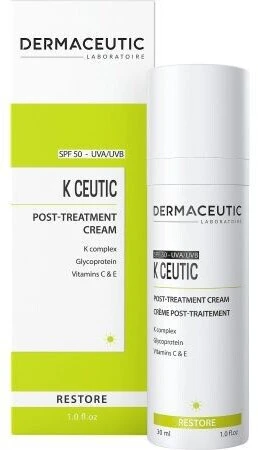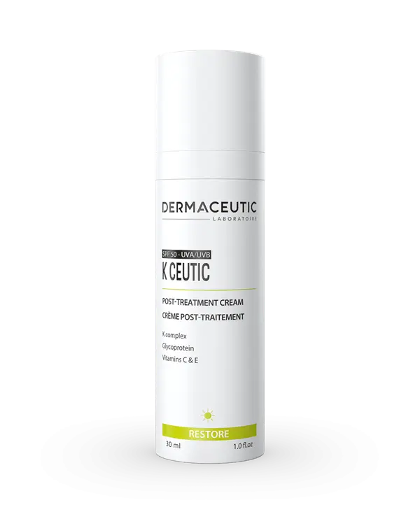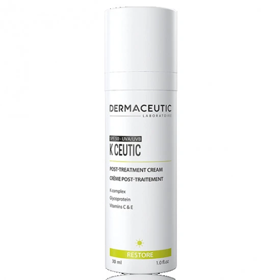 DERMACEUTIC K Ceutic Cicatrisante SPF50 est le soin idéal pour accompagner la peau fragilisée après des actes dermatologiques ou une exposition solaire. Sa formule innovante associe des actifs réparateurs puissants et un écran solaire à large spectre SPF50, pour protéger efficacement contre les UVA/UVB tout en favorisant la régénération cutanée. Enrichi en vitamines C et E, ce soin lutte contre les radicaux libres et renforce la barrière cutanée. Sa texture onctueuse pénètre rapidement, apportant confort et hydratation dès l’application. Hypoallergénique et non comédogène, il convient à tous les types de peau, même les plus sensibles. DERMACEUTIC K Ceutic apaise les rougeurs, limite les tiraillements et accélère la réparation des tissus. Idéal en post-intervention ou en prévention des taches pigmentaires, il aide la peau à retrouver douceur, souplesse et éclat. Appliquez matin et soir sur le visage nettoyé, en insistant sur les zones fragilisées. Renouvelez l’application en cas d’exposition prolongée au soleil. Pour une récupération optimale et une protection maximale, adoptez ce soin incontournable au quotidien.