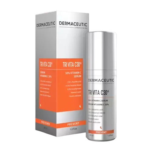 Le sérum Dermaceutic TriVita C30 est un soin expert qui concentre 30 % de vitamine C pure et stabilisée pour une action antioxydante puissante. Sa formule innovante protège efficacement la peau des radicaux libres et prévient les signes du vieillissement cutané. Grâce à son complexe unique, il unifie le teint, ravive l’éclat et atténue les taches pigmentaires. Enrichi en vitamine E et en acide férulique, ce sérum optimise la régénération cellulaire et renforce la barrière cutanée. Sa texture légère et non grasse pénètre rapidement, laissant la peau douce et lumineuse. Idéal pour tous les types de peaux, même sensibles, il s’intègre facilement à votre routine quotidienne. Appliquez chaque matin 4 à 5 gouttes sur le visage, le cou et le décolleté, avant votre crème habituelle. Pour une efficacité optimale, utilisez-le en complément d’une protection solaire. Offrez à votre peau une cure d’éclat et une protection durable contre les agressions extérieures. Le Dermaceutic TriVita C30 est l’allié incontournable pour une peau visiblement plus jeune, lisse et lumineuse.