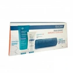 Découvrez le DUCRAY DUO EXPERT IMPERFECTIONS, le coffret idéal pour prendre soin des peaux sujettes aux imperfections. Ce kit complet comprend un gel nettoyant 200 ml, un fluide UV protecteur et une serviette offerte, pour une routine visage experte et efficace. Le gel nettoyant purifie la peau en douceur, éliminant impuretés et excès de sébum sans agresser. Le fluide UV protège votre peau des rayons nocifs du soleil tout en prévenant l’apparition de nouvelles imperfections. Sa texture légère et non grasse s’adapte parfaitement aux peaux mixtes à grasses. Ce duo agit en synergie pour réduire les boutons, resserrer les pores et affiner le grain de peau jour après jour. La serviette douce complète le rituel et facilite l’application des soins. Testée dermatologiquement, cette routine convient à tous les types de peaux à tendance acnéique. Utilisez matin et soir le gel nettoyant, puis appliquez le fluide UV chaque matin pour une protection optimale. Offrez à votre peau l’expertise DUCRAY, pour un teint visiblement plus sain et uniforme.