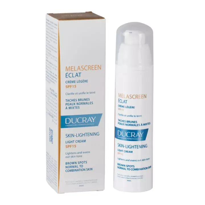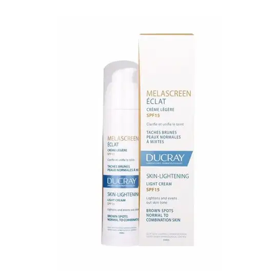 Découvrez DUCRAY MELASCREEN ÉCLAT Légère SPF15, le soin visage idéal pour atténuer les taches brunes et révéler l’éclat naturel de votre peau. Sa formule légère, enrichie en actifs dépigmentants, cible efficacement les irrégularités pigmentaires tout en offrant une hydratation optimale. Grâce à sa protection SPF15, il aide à prévenir l’apparition de nouvelles taches dues au soleil. Sa texture non grasse convient parfaitement aux peaux normales à mixtes et constitue une excellente base de maquillage. Jour après jour, le teint est unifié, lumineux et visiblement plus éclatant. Ce soin dermatologique, testé sous contrôle, respecte la sensibilité de la peau. Il est particulièrement recommandé en cas de teint terne, d’hyperpigmentation ou d’exposition quotidienne aux agressions extérieures. Appliquez chaque matin sur l’ensemble du visage et du cou, sur une peau propre et sèche. Pour des résultats optimaux, complétez votre routine avec les autres soins de la gamme MELASCREEN. Profitez d’un teint sublimé et protégé, en toute légèreté.