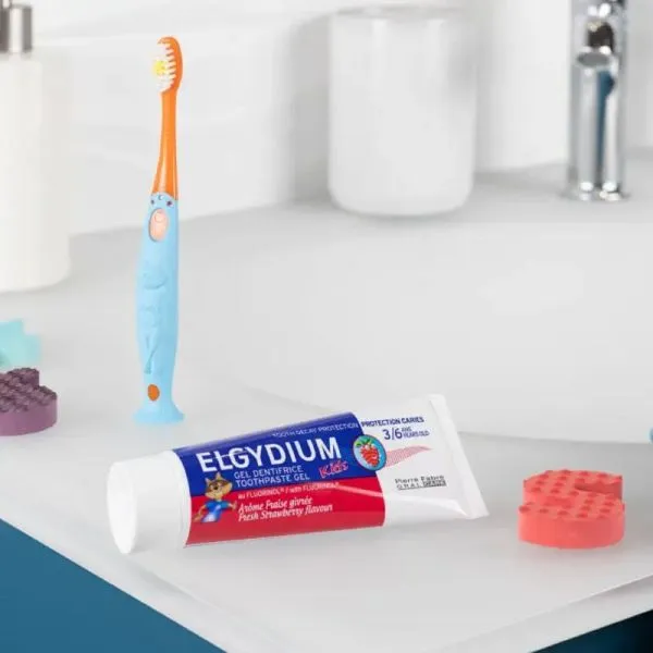 Le dentifrice ELGYDIUM Protection Caries Kids Fraise Givrée 50ml est spécialement formulé pour les enfants, afin de protéger efficacement leurs dents contre les caries. Grâce à sa teneur en Fluorinol® (fluor), il renforce l’émail dentaire tout en assurant une reminéralisation optimale. Son délicieux goût fraise givrée transforme le brossage en un véritable moment de plaisir, favorisant ainsi une bonne hygiène bucco-dentaire dès le plus jeune âge. Sa texture douce respecte les gencives sensibles des enfants et nettoie en douceur sans agresser. Ce dentifrice aide à prévenir la formation de plaque dentaire et à lutter contre les attaques acides responsables des caries. Sa formule adaptée séduit les petits comme les parents, en garantissant une protection quotidienne. Pratique, son format 50 ml est idéal à emporter partout, pour une utilisation à la maison comme en voyage. Utilisez une noisette de dentifrice, sous la surveillance d’un adulte, deux fois par jour après les repas. Pour une efficacité maximale, accompagnez le brossage d’une brosse à dents adaptée à l’âge de l’enfant. Optez pour ELGYDIUM Protection Caries Kids Fraise Givrée, et faites du brossage un moment à la fois essentiel et ludique !