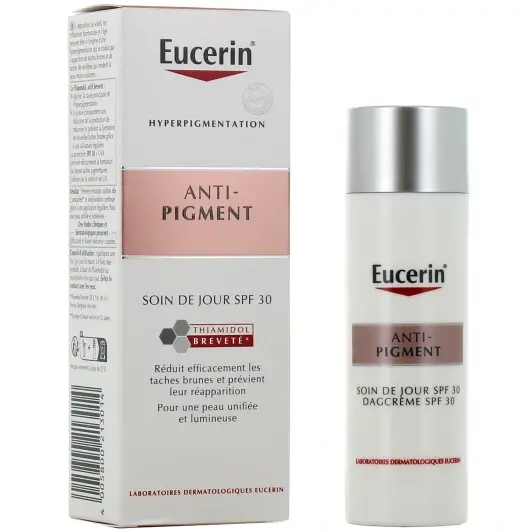 Découvrez EUCERIN ANTI-PIGMENT SOIN DE JOUR SPF30, le soin innovant qui cible efficacement les taches pigmentaires pour révéler un teint plus uniforme et lumineux. Grâce à sa formule enrichie en Thiamidol breveté, il réduit visiblement les taches brunes et prévient leur réapparition. Sa protection SPF30 et ses filtres UVA offrent une défense optimale contre les dommages causés par le soleil, principale cause de l’hyperpigmentation. Texture légère et non grasse, idéale pour tous les types de peaux, même sensibles. Ce soin de jour hydrate intensément, lisse le grain de peau et laisse un fini doux et velouté. Utilisé quotidiennement, il unifie le teint et redonne éclat et confiance à votre peau. Appliquez chaque matin sur le visage, le cou et le décolleté bien nettoyés, en évitant le contact avec les yeux. Pour des résultats optimaux, combinez-le avec les autres soins de la gamme EUCERIN ANTI-PIGMENT. Offrez à votre peau une solution experte et scientifiquement prouvée contre les taches pigmentaires. Adoptez ce geste beauté incontournable pour préserver la jeunesse et l’homogénéité de votre visage.