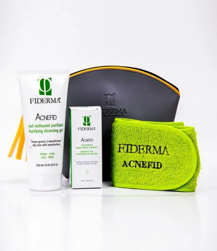 La trousse FIDERMA ACNEFID GEL + SOIN offre une solution complète pour les peaux à tendance acnéique. Ce duo associe un gel nettoyant purifiant et un soin ciblé pour lutter efficacement contre les imperfections du visage. Grâce à ses formules spécifiquement élaborées, il aide à réduire l’excès de sébum, désincruste les pores et limite l’apparition de nouvelles imperfections. Le gel nettoyant élimine en douceur les impuretés sans agresser la peau, tandis que le soin agit localement pour apaiser, matifier et favoriser une peau nette. L’utilisation régulière de cette routine améliore visiblement la texture et la clarté du teint. Pratique, la trousse est idéale pour une utilisation quotidienne ou en déplacement. Profitez d’une réduction de 20% pour prendre soin de votre peau à prix doux. Appliquez le gel matin et soir sur peau humide, puis le soin sur les zones concernées. Convient à tous les types de peaux sujettes à l’acné, même sensibles. Offrez à votre visage une routine experte, pour retrouver confiance et éclat jour après jour.
