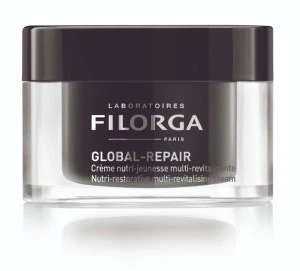 Découvrez FILORGA GLOBAL REPAIR Crème, le soin visage anti-âge global inspiré des techniques de médecine esthétique. Sa formule multi-active agit sur tous les signes du vieillissement cutané : rides, perte de fermeté, taches, manque d’éclat et de nutrition. Enrichie en extraits végétaux et complexes revitalisants, elle nourrit intensément, repulpe et unifie le teint. Sa texture veloutée et fondante procure un confort immédiat et durable, même aux peaux matures et dévitalisées. Grâce à sa technologie unique, la peau retrouve densité, élasticité et luminosité jour après jour. Les rides sont visiblement lissées, le visage paraît plus jeune et éclatant. Pour des résultats optimaux, appliquez matin et/ou soir sur le visage, le cou et le décolleté parfaitement nettoyés. Cette crème peut également s’utiliser en masque de nuit pour un effet régénérant renforcé. Offrez à votre peau l’expertise FILORGA pour une transformation visible et durable.