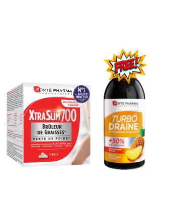 Le Pack Xtra Slim 700 Gel + Turbodraine 500ml de FORTE PH est la solution complète pour accompagner votre programme minceur. Ce duo associe l’efficacité du complément Xtra Slim 700, connu pour son action brûle-graisse, à la formule détoxifiante du Turbodraine, qui aide à éliminer les toxines et à drainer l’organisme. Le gel Xtra Slim 700 est formulé à partir d’actifs naturels rigoureusement sélectionnés pour favoriser la combustion des graisses et soutenir la perte de poids. Le Turbodraine, quant à lui, associe des extraits de plantes reconnues pour leur effet drainant, contribuant ainsi à réduire la rétention d’eau et à affiner la silhouette. Ce pack s’adresse aux personnes souhaitant une approche globale et efficace de la minceur, en agissant à la fois sur l’élimination et la gestion des graisses. Facile à intégrer à votre routine quotidienne, il suffit de prendre le gel selon les recommandations et de diluer le Turbodraine dans un grand verre d’eau ou dans une bouteille à consommer tout au long de la journée. Pour des résultats optimaux, il est conseillé d’associer ce pack à une alimentation équilibrée et à une activité physique régulière. FORTE PH garantit des formules sans compromis alliant sécurité, efficacité et innovation. Offrez-vous un accompagnement minceur professionnel à domicile et atteignez plus rapidement vos objectifs de silhouette.