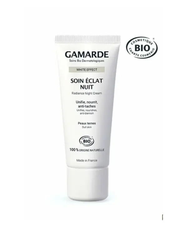 La Crème de Nuit White Effect de Gamarde est le soin idéal pour retrouver un teint uniforme et éclatant chaque matin. Formulée avec des actifs naturels, elle cible les taches pigmentaires et aide à atténuer visiblement les imperfections cutanées. Sa texture onctueuse pénètre rapidement, laissant la peau douce, souple et parfaitement hydratée durant la nuit. Enrichie en eau de Gamarde-les-Bains et en huiles végétales bio, cette crème offre un confort optimal même aux peaux les plus sensibles. Son action éclaircissante progressive contribue à estomper les irrégularités du teint et à prévenir leur réapparition. Utilisée régulièrement, elle révèle une peau plus lumineuse, lisse et revitalisée au réveil. Hypoallergénique et sans ingrédients controversés, elle respecte la nature fragile de votre épiderme. Appliquez chaque soir sur une peau propre, en massant délicatement le visage et le cou. Pour des résultats optimaux, associez-la aux autres soins de la gamme White Effect. Offrez à votre peau une routine experte pour sublimer sa beauté naturelle.