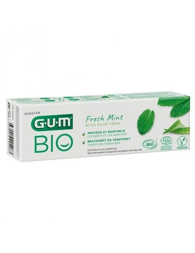 Le dentifrice GUM BIO 75 ml allie efficacité et naturalité pour une hygiène bucco-dentaire optimale. Formulé à partir d’ingrédients d’origine naturelle, il respecte l’équilibre de la bouche tout en assurant une protection complète contre les caries et la plaque dentaire. Sa formule certifiée bio, sans fluor, sans colorants ni arômes artificiels, convient parfaitement aux personnes recherchant des soins doux et respectueux. Enrichi en extraits de plantes, il aide à apaiser les gencives sensibles et à renforcer l’émail. Sa texture onctueuse procure une sensation de fraîcheur durable, pour une bouche saine jour après jour. Idéal pour toute la famille, ce dentifrice est adapté à un usage quotidien. Utilisez-le matin et soir, en brossant soigneusement toutes les surfaces dentaires pendant deux minutes. Pour un résultat optimal, complétez votre routine avec un bain de bouche et une brosse à dents adaptés. GUM, expert de la santé bucco-dentaire, s’engage à vous offrir des produits sûrs et innovants. Adoptez le dentifrice GUM BIO et révélez la beauté naturelle de votre sourire.