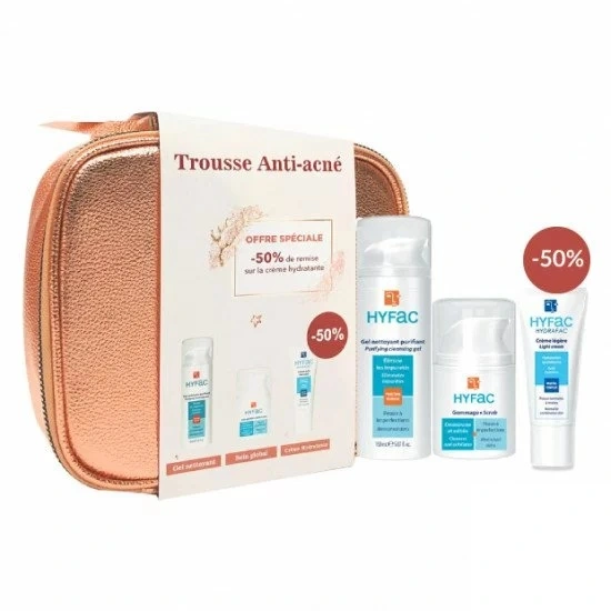 La Trousse Anti-Acné R HYFAC est l’alliée incontournable des peaux sujettes aux imperfections. Elle combine trois soins experts : le Gel Nettoyant Purifiant (150 ml), le Soin Global Women et la Crème Légère (en format -50%). Le Gel Nettoyant élimine efficacement l’excès de sébum et les impuretés, tout en respectant l’équilibre cutané. Le Soin Global Women cible les boutons, régule la production de sébum et favorise l’atténuation des marques résiduelles. La Crème Légère hydrate intensément sans alourdir la peau, pour un teint frais et matifié. Cette routine a été développée par HYFAC, marque reconnue pour son expertise dermatologique. Elle convient parfaitement aux peaux jeunes à tendance acnéique, même sensibles. Pratique, la trousse permet de suivre un rituel complet matin et soir, pour des résultats visibles dès les premières semaines. Utilisez le Gel Nettoyant matin et soir, appliquez ensuite le Soin Global Women, puis terminez par la Crème Légère. Offrez à votre peau un soin sur-mesure, pour retrouver confiance et éclat au quotidien.