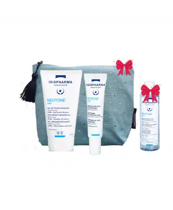 Découvrez la trousse NEOTONE d’ISISPHARMA, votre alliée experte pour une routine anti-taches complète et ciblée. Ce coffret associe le NEOTONE Sérum, un soin intensif correcteur de taches brunes, et NEOTONE Eyes, spécialement formulé pour atténuer les cernes, poches et taches du contour de l’œil. En exclusivité, l’eau micellaire NEOTONE Aqua 100 ml est offerte pour un nettoyage doux et efficace de la peau. Grâce à des actifs innovants et reconnus, ces soins favorisent l’éclaircissement du teint, unifient la peau et redonnent de l’éclat au visage. La texture légère et non grasse du sérum pénètre rapidement pour une action ciblée, tandis que le soin yeux hydrate et défatigue le regard. Utilisés quotidiennement, ils réduisent visiblement les taches pigmentaires et préviennent leur réapparition. Cette routine convient à tous les types de peaux, même sensibles. Appliquez le sérum le soir sur le visage propre, puis le soin yeux matin et soir sur le contour des yeux. Complétez votre routine avec l’eau micellaire pour une peau nette et apaisée. Offrez à votre visage une solution experte, pour une peau lumineuse, uniforme et sublimée jour après jour.