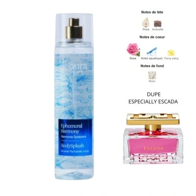 L’AURA WOMEN BODY SPLASH HARMONIE HEDONISTE 250ML est une brume parfumée spécialement conçue pour sublimer la peau des femmes au quotidien. Sa formule légère dépose un voile délicatement parfumé, procurant instantanément une sensation de fraîcheur et de bien-être. Enrichie en notes harmonieuses, elle enveloppe le corps d’un sillage subtil, à la fois féminin et raffiné. Idéale pour une utilisation après la douche ou à tout moment de la journée, elle hydrate légèrement la peau et la laisse douce au toucher. Son format généreux de 250 ml permet une utilisation prolongée, pour une expérience sensorielle durable. Pratique et facile à glisser dans votre sac, elle vous accompagne partout pour un coup de fraîcheur immédiat. L’AURA a élaboré ce body splash sans ingrédients agressifs, pour respecter toutes les peaux, même sensibles. Utilisez-le en vaporisation sur l’ensemble du corps ou en retouche parfumée selon vos envies. Offrez-vous un rituel de soin parfumé, symbole d’harmonie et de plaisir au féminin. Adoptez L’AURA HARMONIE HEDONISTE pour révéler chaque jour votre éclat naturel avec élégance.