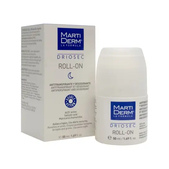Découvrez MARTI DERM DRIOSEC INTENSIVE ROLL-ON 50ML, le soin expert conçu pour combattre efficacement la transpiration excessive et maintenir votre peau fraîche tout au long de la journée. Grâce à sa formule haute tolérance, il offre une action anti-transpirante intensive sans irriter la peau, même la plus sensible. Enrichi en agents apaisants, ce roll-on limite les sensations d’inconfort et prévient l’apparition des mauvaises odeurs. Sa texture légère et non collante pénètre rapidement, laissant la peau douce et sèche après application. Pratique et discret, il s’adapte à un usage quotidien et convient parfaitement aux personnes recherchant une solution fiable contre la transpiration excessive. MARTI DERM DRIOSEC INTENSIVE garantit une protection longue durée, idéale pour rester serein en toutes circonstances. Sans alcool ni parabènes, il respecte l’équilibre naturel de la peau. Appliquez chaque matin sur une peau propre et sèche, en insistant sur les zones sujettes à la transpiration, comme les aisselles. Pour un résultat optimal, évitez d’utiliser sur une peau irritée ou fraîchement rasée. Offrez-vous la tranquillité d’esprit d’un anti-transpirant de qualité professionnelle avec MARTI DERM, expert du soin dermatologique.