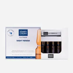 Découvrez MARTI DERM PACK PLATINUM NIGHT RENEW, votre allié pour une peau éclatante au réveil. Ce soin de nuit, spécialement formulé pour le visage, associe des actifs puissants comme les alpha-hydroxyacides (AHA), le collagène marin et l’acide hyaluronique. Sa formule innovante favorise la régénération cellulaire, affine le grain de peau et atténue les signes de l’âge. Grâce à son action exfoliante douce, il lisse les rides, resserre les pores et redonne de l’éclat au teint. Son effet hydratant intense protège la peau de la déshydratation nocturne. Dès la première application, la peau paraît plus souple, douce et revitalisée. Ce pack est idéal pour toutes les peaux cherchant à retrouver jeunesse et luminosité. Utilisez une ampoule chaque soir, sur une peau propre et sèche, en massant délicatement le visage, le cou et le décolleté. Pour un résultat optimal, appliquez ensuite votre soin hydratant habituel. Offrez-vous chaque nuit une expérience de soin professionnelle à domicile avec MARTI DERM.