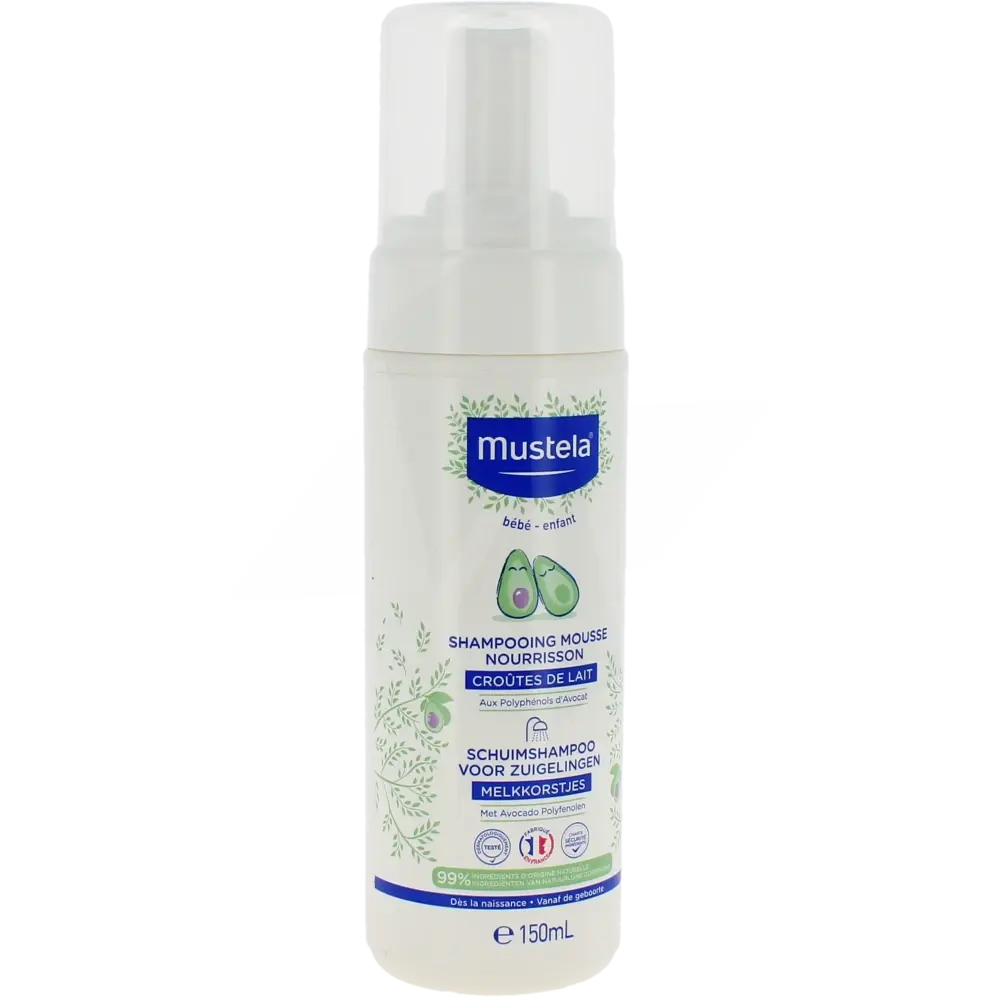 Le Shampooing Mousse Nourrisson Mustela nettoie en douceur les cheveux et le cuir chevelu délicat des tout-petits dès la naissance. Sa formule hypoallergénique, sans savon, respecte l’équilibre fragile du cuir chevelu des bébés. Grâce à ses agents lavants ultra-doux, il élimine en douceur les impuretés tout en prévenant et en traitant la croûte de lait. Enrichi en perséose d’avocat, il protège la barrière cutanée et hydrate efficacement. Sa texture mousse légère se rince facilement et ne coule pas dans les yeux, pour un moment de soin agréable. Testé sous contrôle dermatologique et pédiatrique, il garantit une tolérance optimale. L’utilisation régulière de ce shampooing contribue à garder le cuir chevelu sain et apaisé. Appliquez une petite quantité sur cheveux mouillés, massez délicatement puis rincez. Pratique, son flacon-pompe permet un dosage précis et hygiénique. Offrez à votre bébé un soin quotidien sûr et respectueux de sa peau fragile avec Mustela.