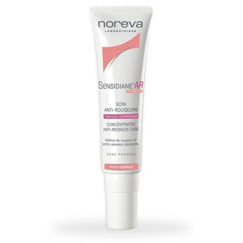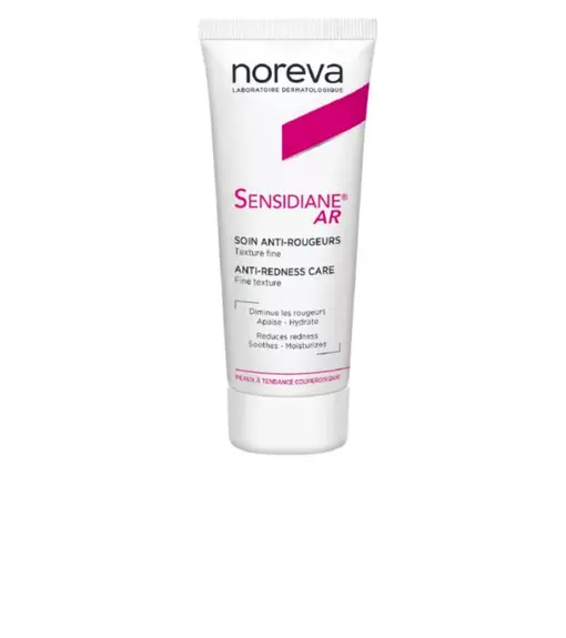 NOREVA SENSIDIANE AR ANTI ROUGEURS INTENSIF 30ML est le soin expert dédié à la peau sensible, sujette aux rougeurs et à la couperose. Sa formule innovante apaise instantanément les sensations d’échauffement et limite l’apparition de nouvelles rougeurs. Enrichi en agents apaisants et hydratants, ce soin renforce la barrière cutanée tout en procurant confort et douceur. Sa texture légère et non grasse pénètre rapidement, sans laisser de film collant, pour une application agréable au quotidien. Les actifs brevetés agissent spécifiquement sur les capillaires afin de réduire visiblement les rougeurs installées. Utilisé régulièrement, Sensidiane AR unifie le teint et sublime la peau, la rendant plus résistante face aux agressions extérieures. Hypoallergénique et sans parfum, il convient parfaitement aux peaux réactives et intolérantes. Appliquez matin et/ou soir sur une peau propre, en insistant sur les zones concernées. Pour un résultat optimal, intégrez-le à votre routine visage en complément d’un nettoyant doux. Offrez à votre peau une solution experte et retrouvez un teint apaisé jour après jour.