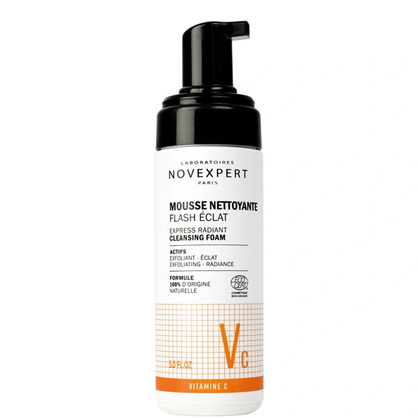 Offrez à votre peau un nettoyage expert et une luminosité instantanée avec la Flash Éclat Mousse Nettoyante de Novexpert. Sa texture aérienne élimine en douceur impuretés, maquillage et excès de sébum sans dessécher l’épiderme. Formulée avec des actifs 100% d’origine naturelle, elle respecte l’équilibre cutané et convient à toutes les peaux, même sensibles. Enrichie en vitamine C stabilisée, elle ravive l’éclat du teint dès la première utilisation. La peau est nette, fraîche, plus lumineuse et visiblement plus saine. Facile à utiliser, elle s’applique matin et soir sur visage humide : massez, laissez agir quelques secondes puis rincez abondamment. Sa formule sans savon et hypoallergénique garantit une tolérance optimale. Ce geste quotidien prépare la peau à recevoir vos soins habituels tout en la protégeant des agressions extérieures. Adoptez la Flash Éclat Mousse Nettoyante pour un teint éclatant jour après jour.