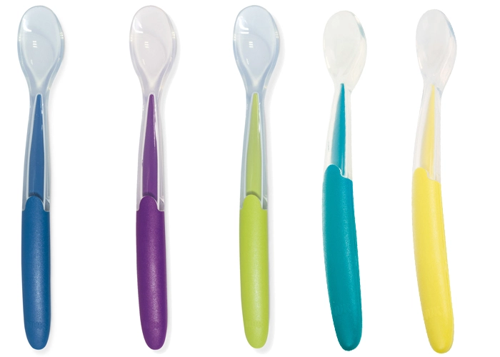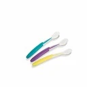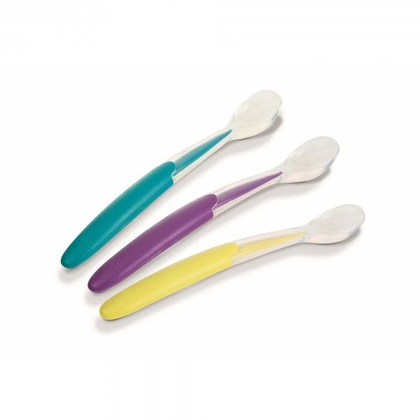 Cuillères en silicone NUK, douces et sûres pour les premières repas de bébé.
