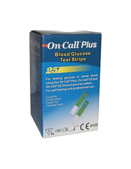 Les bandelettes ON CALL PLUS B/25 de la marque ON CALL sont spécialement conçues pour l’auto-surveillance précise de la glycémie à domicile ou en cabinet médical. Grâce à leur technologie de détection avancée, elles garantissent des résultats rapides et fiables en seulement quelques secondes. Compatibles exclusivement avec les lecteurs ON CALL PLUS, elles assurent une utilisation optimale et une grande sécurité dans le suivi du diabète. Chaque boîte contient 25 bandelettes emballées individuellement pour préserver leur intégrité et leur efficacité. Faciles à manipuler, elles nécessitent seulement une faible goutte de sang, rendant le test plus confortable et moins invasif. La lecture claire et instantanée des résultats permet une prise de décision rapide pour l’ajustement du traitement. Pratiques, elles s’intègrent parfaitement à votre routine quotidienne de surveillance glycémique. Pour de meilleurs résultats, veillez à bien refermer le flacon après chaque utilisation et à vérifier la date de péremption. Les bandelettes ON CALL PLUS sont la solution idéale pour un contrôle glycémique fiable, précis et en toute simplicité. Adoptez-les pour une gestion optimale de votre santé au quotidien.