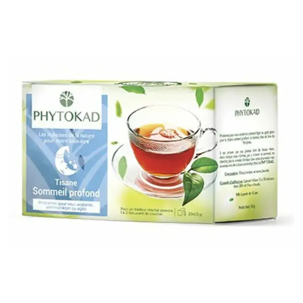 Découvrez PHYTOKAD Tisane Sommeil Profond, une solution naturelle pour retrouver un sommeil de qualité. Élaborée par la marque PHYTOKAD, cette tisane associe des plantes reconnues pour leurs vertus relaxantes et apaisantes. Chaque sachet contient un mélange soigneusement sélectionné pour faciliter l’endormissement et prolonger les cycles de sommeil profond. Grâce à sa formule sans accoutumance, elle convient parfaitement à un usage quotidien. Idéale en période de stress ou lors de troubles ponctuels du sommeil, elle aide à réduire les réveils nocturnes et favorise un réveil en pleine forme. Facile à préparer, il suffit d’infuser un sachet dans une tasse d’eau chaude 15 minutes avant le coucher. Son goût délicat et naturel transforme votre rituel du soir en un véritable moment de détente. PHYTOKAD s’engage à offrir des compléments alimentaires de qualité, pour prendre soin de votre bien-être en toute sécurité. Offrez-vous des nuits paisibles et réparatrices grâce à cette tisane innovante, pensée pour accompagner votre équilibre au quotidien.