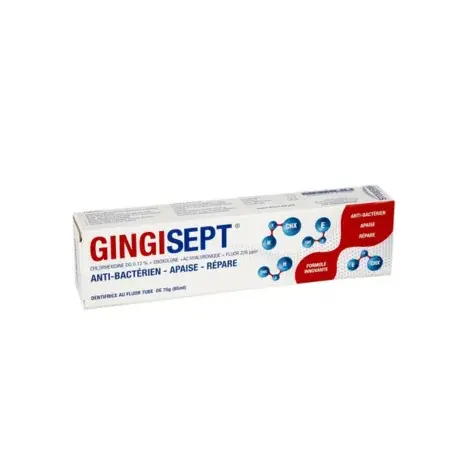 STODERMA Gingisept Dentifrice 75g est le soin quotidien idéal pour préserver la santé de vos gencives et renforcer votre hygiène bucco-dentaire. Grâce à sa formule experte, il aide à prévenir les irritations gingivales et limite le développement de la plaque dentaire, pour une bouche saine jour après jour. Enrichi en actifs apaisants et protecteurs, ce dentifrice calme les sensibilités et contribue à la réduction des saignements occasionnels. Sa texture onctueuse permet un brossage agréable et efficace, laissant une sensation de fraîcheur durable. Utilisé régulièrement, il favorise une haleine fraîche et une protection optimale contre les agressions extérieures. Adapté à toute la famille, il convient aux adultes comme aux adolescents. Pour de meilleurs résultats, brossez-vous les dents matin et soir pendant deux minutes, en effectuant des mouvements circulaires doux. Complétez votre routine avec un bain de bouche adapté pour une action renforcée. STODERMA Gingisept, la solution experte pour des gencives protégées et un sourire éclatant. Offrez à votre bouche le meilleur de la protection au quotidien.