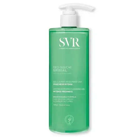 Découvrez SVR Spirial Deo-Douche Gel Lavant Déodorant 400ml, l’allié quotidien des peaux exigeantes. Ce gel lavant 2-en-1 nettoie en douceur tout en offrant une action déodorante efficace pendant 24 heures. Sa formule dermatologiquement testée convient à tous les types de peaux, même sensibles, et respecte l’équilibre cutané. Enrichi en agents hydratants et apaisants, il prévient les sensations d’inconfort et de tiraillement. Grâce à ses actifs antibactériens, il lutte contre les mauvaises odeurs tout en procurant une sensation de fraîcheur durable. Sa mousse onctueuse et son parfum discret garantissent un moment de bien-être à chaque utilisation. Idéal pour les sportifs ou en période de chaleur, il s’utilise quotidiennement sous la douche sur l’ensemble du corps. Appliquez sur peau humide, faites mousser puis rincez soigneusement. Adoptez SVR Spirial Deo-Douche pour une peau propre, douce et protégée toute la journée. Profitez d’un geste hygiène complet, sans compromis entre efficacité et douceur.