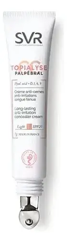Découvrez SVR Topialyse Palpebral CC Yeux Light, le soin correcteur teinté conçu pour le contour des yeux sensibles et sujets aux irritations. Sa formule haute tolérance apaise immédiatement les sensations d’inconfort, tout en hydratant intensément la peau fragile des paupières. Enrichi en actifs dermatologiques, ce soin camoufle efficacement les cernes, rougeurs et imperfections pour un regard visiblement lumineux et unifié. La teinte Light s’adapte aux carnations claires, offrant une couvrance naturelle et sans effet masque. Hypoallergénique et sans parfum, il convient parfaitement aux porteurs de lentilles et aux peaux atopiques. Sa texture crémeuse s’étale facilement sans migrer dans les plis, pour un résultat longue tenue. Testé sous contrôle dermatologique et ophtalmologique, il respecte la zone sensible du contour de l’œil. Utilisez-le chaque matin, en tapotant délicatement sur la paupière et le contour de l’œil, seul ou en base de maquillage. SVR Topialyse Palpebral CC Yeux Light est l’allié idéal pour un regard frais, reposé et protégé au quotidien. Adoptez ce geste expert pour allier soin et correction en un seul produit.