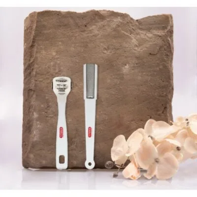 Offrez à vos pieds un soin professionnel à domicile avec le TITANIA SET RABOT+LIME PIEDS 3045/M. Ce kit complet associe un rabot précis pour éliminer efficacement callosités et peaux dures, et une lime ergonomique pour lisser la peau et retrouver des pieds doux. Fabriqué par TITANIA, marque reconnue pour la qualité de ses accessoires de pédicure, ce set garantit sécurité, confort et hygiène. Le rabot dispose d’une lame affûtée et sécurisée, idéale pour un usage maîtrisé, tandis que la lime double face permet de finir le soin en douceur. Pratique et durable, ce kit est conçu pour s’adapter à toutes les routines de soins des pieds, que ce soit pour un entretien régulier ou un traitement intensif. Sa prise en main ergonomique offre un geste sûr et précis, même pour les débutants. Pour un résultat optimal, utilisez le rabot sur pieds propres et secs, puis finalisez avec la lime pour une douceur incomparable. Adoptez ce set TITANIA pour des pieds nets, sains et parfaitement entretenus toute l’année. Un indispensable de votre matériel médical pour allier esthétique et bien-être au quotidien.