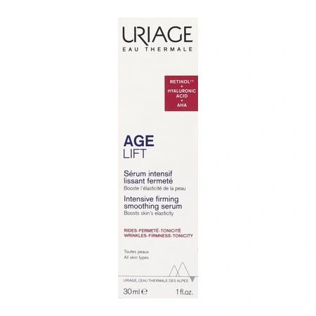 Découvrez le Sérum Intensif Multi-Actions Age Lift d’Uriage, un soin visage expert qui cible tous les signes de l’âge. Sa formule innovante associe du rétinol végétal et de l’acide hyaluronique pour lisser les rides, raffermir la peau et redonner de l’éclat au teint. Enrichi en eau thermale d’Uriage, ce sérum procure une hydratation intense tout en renforçant la barrière cutanée. Sa texture légère et soyeuse pénètre rapidement sans laisser de film gras, idéale pour une routine quotidienne. Les peptides anti-âge stimulent le renouvellement cellulaire pour une peau visiblement plus jeune et tonique. Les signes de fatigue s’estompent, le grain de peau s’affine et le visage retrouve luminosité et vitalité. Convient à tous les types de peaux, même sensibles. Utilisez matin et/ou soir sur le visage et le cou parfaitement nettoyés, avant votre soin habituel. Pour un résultat optimal, complétez avec la gamme Age Lift d’Uriage. Offrez à votre peau une cure de jeunesse globale, jour après jour.