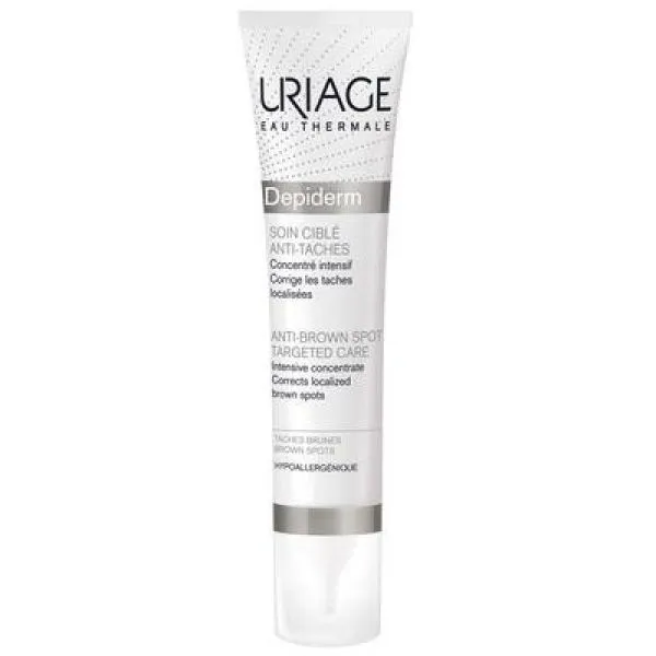 Découvrez URIAGE DEPIDERM Soin Cible 15ml, le soin expert anti-taches conçu pour corriger localement les taches brunes du visage. Sa formule innovante, enrichie en Eau Thermale d’Uriage et actifs dépigmentants, agit efficacement sur les défauts pigmentaires tout en respectant les peaux les plus sensibles. Grâce à son embout précis, l’application est facile et ciblée, pour une action sur-mesure sur chaque imperfection. Ce soin atténue visiblement l’intensité et la taille des taches, tout en unifiant et illuminant le teint jour après jour. Sa texture légère pénètre rapidement, sans laisser de film gras, et permet un maquillage immédiat après application. Hypoallergénique et sans parfum, il convient parfaitement aux peaux réactives et assure une tolérance optimale. Utilisé quotidiennement, il prévient l’apparition de nouvelles taches et favorise une peau plus homogène et éclatante. Pour de meilleurs résultats, appliquez matin et soir directement sur les zones concernées, avant votre soin habituel. Adoptez URIAGE DEPIDERM Soin Cible pour retrouver une peau visiblement plus lumineuse, uniforme et protégée.