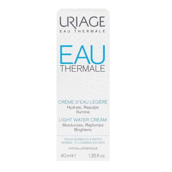 Découvrez la Crème d’Eau Légère Uriage, un soin hydratant essentiel pour votre visage. Sa formule enrichie à l’eau thermale d’Uriage offre une hydratation continue et durable, tout en renforçant la barrière cutanée. Sa texture légère pénètre instantanément et laisse la peau souple, douce et parfaitement fraîche. Idéale pour les peaux normales à mixtes, elle apporte un confort immédiat sans effet gras. Grâce à son complexe unique, elle protège la peau des agressions extérieures et prévient la déshydratation. Utilisée matin et/ou soir sur une peau propre, elle devient le geste beauté incontournable de votre routine. Son format 40 ml est parfait pour l’emporter partout avec vous. Non comédogène et hypoallergénique, elle convient aux peaux les plus sensibles. Offrez à votre visage une hydratation optimale et un éclat naturel chaque jour avec la Crème d’Eau Légère Uriage.