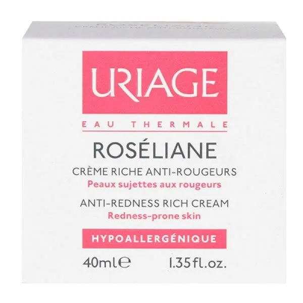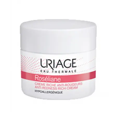 La Crème Riche Roséliane d’Uriage est spécialement formulée pour apaiser et protéger les peaux sensibles sujettes aux rougeurs. Sa texture onctueuse et enveloppante hydrate intensément, tout en procurant un confort immédiat et durable. Grâce à l’Eau Thermale d’Uriage, elle renforce la barrière cutanée et diminue la réactivité de la peau face aux agressions extérieures. Enrichie en actifs décongestionnants et anti-inflammatoires, cette crème réduit visiblement les rougeurs et atténue les sensations d’échauffement. Jour après jour, le teint devient plus uniforme et la peau retrouve douceur et souplesse. Sa formule hypoallergénique, sans parfum et non comédogène, convient parfaitement aux peaux sèches à très sèches. Utilisée matin et/ou soir sur le visage parfaitement nettoyé, elle s’intègre facilement dans votre routine beauté quotidienne. Pour un résultat optimal, associez-la à l’ensemble de la gamme Roséliane d’Uriage. Offrez à votre peau la protection et la douceur qu’elle mérite avec la Crème Riche Roséliane, le soin expert des peaux sujettes aux rougeurs.