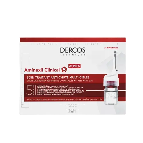 Découvrez VICHY DERCOS AMINEXIL AMPOULES FEMME, le soin intensif conçu pour lutter efficacement contre la chute de cheveux féminine. Sa formule exclusive à l’Aminexil, associée à des actifs fortifiants, agit directement à la racine pour renforcer l’ancrage du cheveu et stimuler sa croissance. Enrichie en vitamines B et PP, elle revitalise la fibre capillaire, redonne du volume et sublime la chevelure dès les premières utilisations. Facile à appliquer grâce à son embout précis, chaque ampoule délivre la juste dose pour un traitement ciblé et hygiénique. Les cheveux deviennent visiblement plus denses, plus résistants et plus brillants. Hypoallergénique et adaptée aux cuirs chevelus sensibles, cette cure convient à tous types de cheveux. Dès 3 semaines, la chute est freinée et la fibre capillaire renforcée. Pour un résultat optimal, appliquez quotidiennement une ampoule sur cuir chevelu sec ou humide, en massant délicatement. Offrez à vos cheveux un soin professionnel à domicile, testé sous contrôle dermatologique. Redonnez force, vitalité et beauté à votre chevelure avec VICHY DERCOS AMINEXIL.