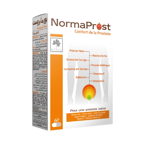 VITAL Normaprost Gélules est un complément alimentaire spécifiquement formulé pour contribuer au maintien du bon fonctionnement de la prostate. Grâce à une association exclusive d’extraits naturels, il aide à préserver le confort urinaire et le bien-être masculin au quotidien. Sa formule innovante associe des ingrédients reconnus pour leur action ciblée, tels que le zinc, le sélénium et des plantes sélectionnées. Ces actifs agissent en synergie pour soutenir la vitalité et limiter les désagréments liés à l’âge. Normaprost se distingue par ses gélules faciles à avaler, idéales pour une prise quotidienne discrète et pratique. Ce complément contribue également à protéger les cellules contre le stress oxydatif, participant ainsi au maintien global de la santé masculine. Sa tolérance optimale en fait un allié adapté à tous les hommes souhaitant préserver leur confort urinaire. Pour une efficacité maximale, il est conseillé de prendre 2 gélules par jour avec un grand verre d’eau, de préférence au cours du repas. N’attendez plus pour intégrer VITAL Normaprost dans votre routine bien-être et bénéficiez d’une solution naturelle pour soutenir votre équilibre au masculin.