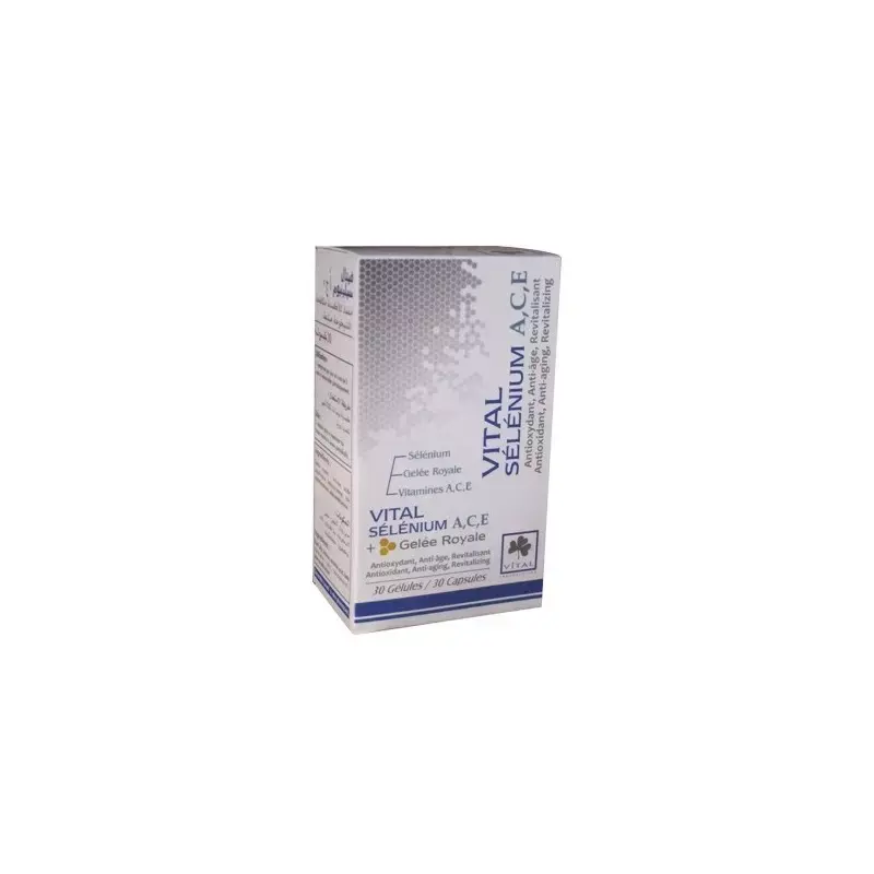 VITAL SELENIUM ACE ANTI AGE GEL est un complément alimentaire innovant, conçu pour préserver la jeunesse et l’éclat de votre peau. Sa formule associe sélénium, vitamines A, C et E, puissants antioxydants reconnus pour leur capacité à lutter contre le stress oxydatif, principal responsable du vieillissement cutané. Grâce à cette synergie d’ingrédients, ce gel contribue à protéger les cellules contre les radicaux libres et à renforcer les défenses naturelles de l’organisme. Le sélénium favorise également le maintien d’une peau saine, tandis que les vitamines participent à la régénération cellulaire et à l’éclat du teint. Sa texture gel facilite une prise quotidienne agréable et une assimilation optimale des actifs. Idéal en cure, VITAL SELENIUM ACE ANTI AGE GEL s’adresse à toutes les personnes souhaitant agir efficacement contre les signes du temps et préserver leur capital jeunesse. Pour un résultat optimal, il est recommandé de consommer une dose quotidienne en complément d’une alimentation variée et équilibrée. Ce produit convient aussi bien aux femmes qu’aux hommes, dès l’apparition des premiers signes de l’âge. Offrez à votre peau une protection renforcée et un véritable bouclier anti-âge grâce à VITAL SELENIUM ACE ANTI AGE GEL.