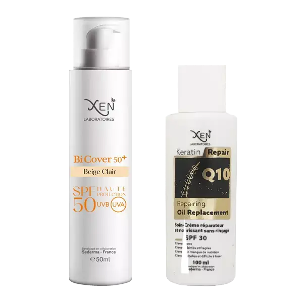 Découvrez XEN DUO BICOVER BD +KERATIN OIL REPLACEMENT, l’innovation solaire signée XEN. Ce soin capillaire unique combine une protection solaire avancée et une formule enrichie en kératine pour sublimer vos cheveux tout l’été. Grâce à sa double action, il protège efficacement la fibre capillaire contre les UV, la chaleur et les agressions extérieures, tout en réparant et nourrissant en profondeur. Sa texture légère ne graisse pas et laisse les cheveux doux, brillants et faciles à coiffer. L’huile de kératine renforce la structure du cheveu et prévient la casse, pour une chevelure visiblement plus saine. Idéal en période d’exposition au soleil, à la plage ou à la piscine, il s’applique sur cheveux secs ou humides, sans rinçage. Quelques noisettes suffisent pour répartir le produit sur les longueurs et pointes. Utilisé régulièrement, XEN DUO BICOVER préserve la couleur, hydrate et apporte une protection durable. Offrez à vos cheveux le meilleur de la science capillaire et vivez l’été en toute sérénité !